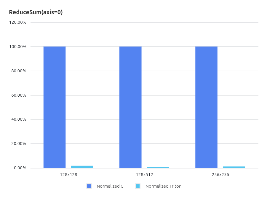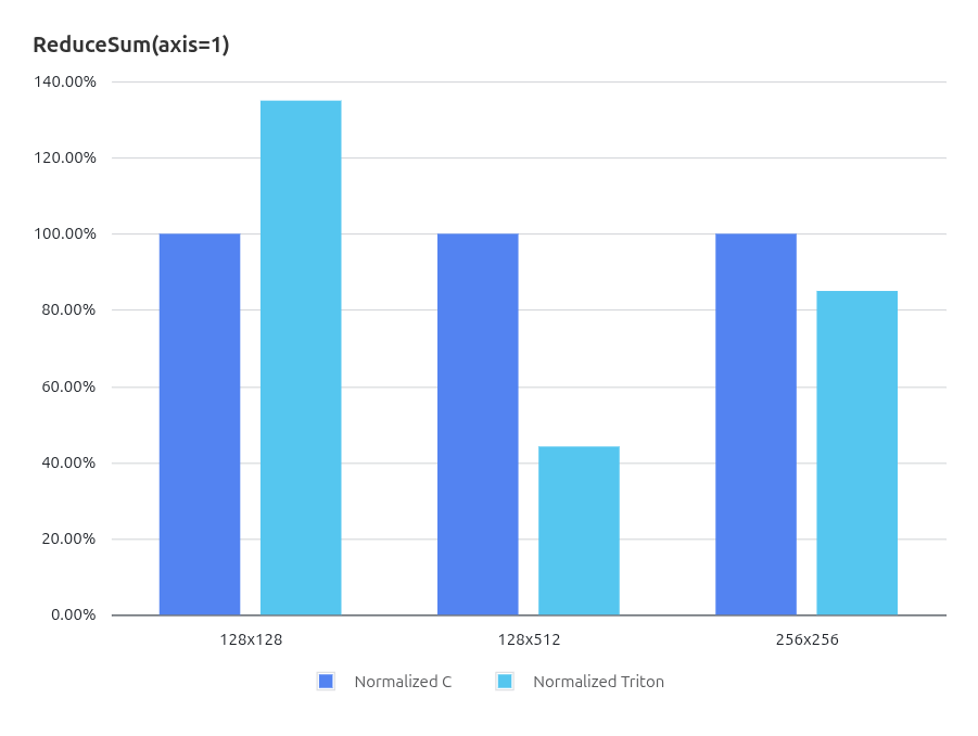通过这种归一化方式,可以消除不同算子规模带来的绝对周期差异,从而更加直观地比较 Triton 编译器生成代码与手写 C 算子 实现之间的性能差距。