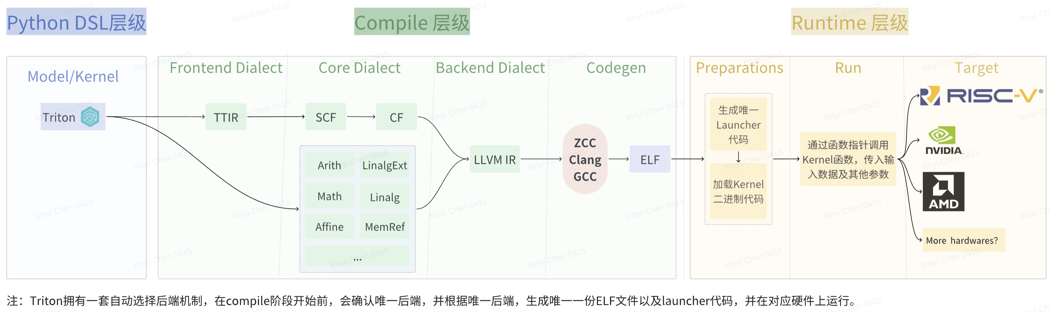 对多数用户而言,Triton kernel 的使用体验往往被简化为三行代码:定义 kernel、指定 grid、传入参数。但在这三行代码背后,Triton 实际上完成了一整套跨语言、跨 IR、跨编译期与运行期的协同工作。